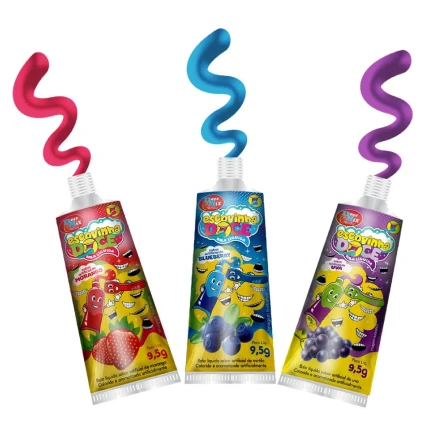 • Kit Interativo Completo: Cada embalagem individual contém um tubo de bala líquida, uma pastilha comestível e uma escovinha de brinquedo colorida.