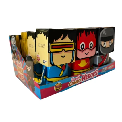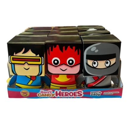 Salve o dia com o Happy Candy Heroes da Happy Time! Este produto inovador une o prazer da guloseima com o colecionismo, apresentando personagens icônicos em um design geométrico moderno que fica incrível na estante após o consumo.