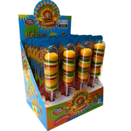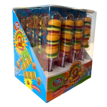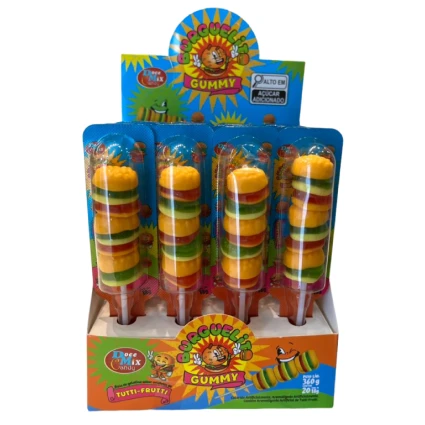 O Burguelit Gummy é o lanche mais divertido que você já viu em formato de doce. Apresentado em um formato criativo de espetinho, cada unidade traz três mini hambúrgueres de gelatina macia com o delicioso sabor de Tutti-Frutti, garantindo o sucesso em festas e momentos de lazer.