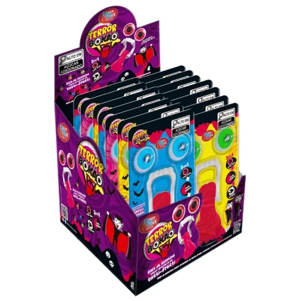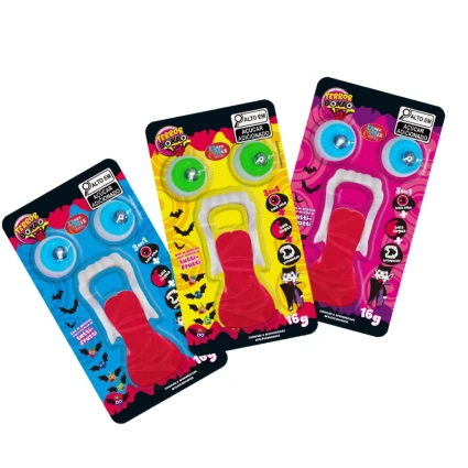 A Bala de Gelatina Terror Bokão é a guloseima perfeita para quem adora uma brincadeira “aterrorizante”. Com um formato divertido de boca com dentes à mostra, essa gelatina macia e saborosa ainda traz o efeito surpresa de pintar a língua de azul.