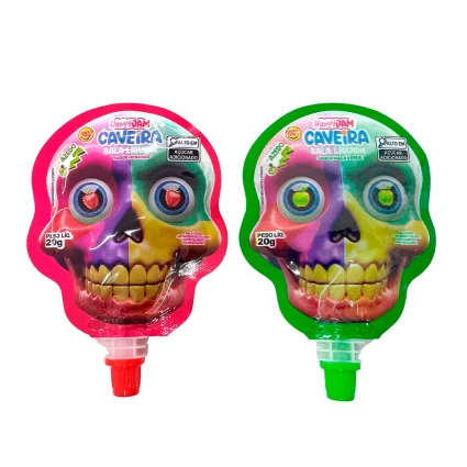 Leve diversão e muito estilo para o seu ponto de venda ou evento com a Bala Líquida Caveira! Este doce inovador não apenas chama a atenção pelo visual neon impactante, mas também surpreende pelo sabor intenso e pela praticidade da embalagem.