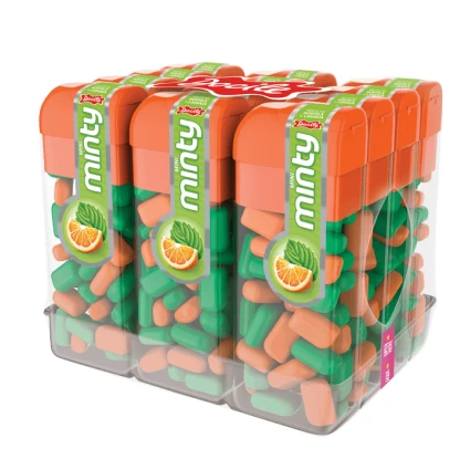 A Mini Minty Hortelã + Laranja da Docile oferece uma combinação inusitada e deliciosa. Com pastilhas coloridas que unem a refrescância da hortelã com o sabor vibrante da laranja, é a escolha ideal para ter sempre à mão na bolsa ou na mochila.