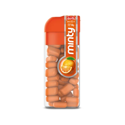 A Mini Minty Laranja da Docile é a escolha perfeita para quem busca uma refrescância frutada e imediata. Com pastilhas crocantes de cor laranja vibrante, ela entrega o equilíbrio ideal entre o sabor cítrico e a praticidade de uma embalagem “pocket”.