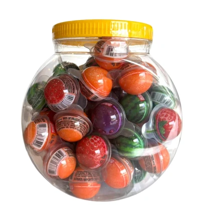 Design Realista: As gomas de mascar possuem o formato e a textura visual de frutas reais, incluindo detalhes de casca e sementes (conforme a fruta).