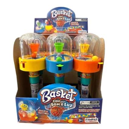 Sinta a emoção de uma partida real com o Confeito Basket com Som e Luz da Fampar Toys! Este produto inovador combina um jogo de basquete de bolso com guloseimas deliciosas, proporcionando uma experiência sensorial completa para as crianças.