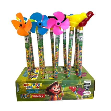• Interatividade: As crianças podem soprar o apito, girar o catavento e saborear as guloseimas ao mesmo tempo.