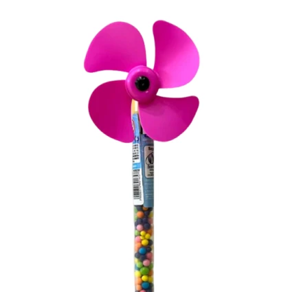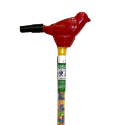 • Brinquedo 3 em 1: Inclui um apito funcional no topo em formato de canário, um catavento colorido e um tubete de confeitos.