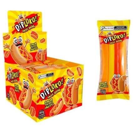 Visual Criativo e Detalhado: Gelatina modelada com cores vibrantes que simulam o pão e a salsicha, proporcionando uma brincadeira visual antes mesmo da primeira mordida.