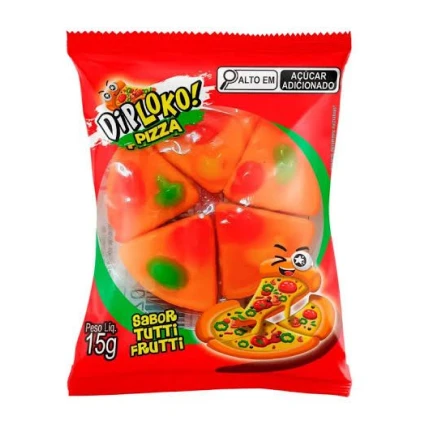 Design Realista: Gelatina modelada com detalhes que lembram o “recheio” e a “borda” de uma pizza de verdade, tornando a experiência de comer muito mais lúdica.