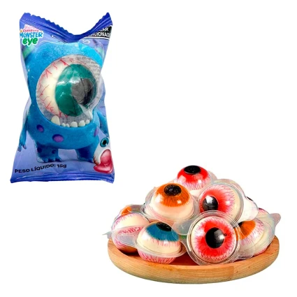 A Monster Eye da Happy Time é a bala de goma perfeita para quem busca uma experiência lúdica e um pouco “assustadora”. Com um formato de globo ocular ultra realista e um recheio suculento, ela transforma qualquer lanche ou festa temática em um momento inesquecível.