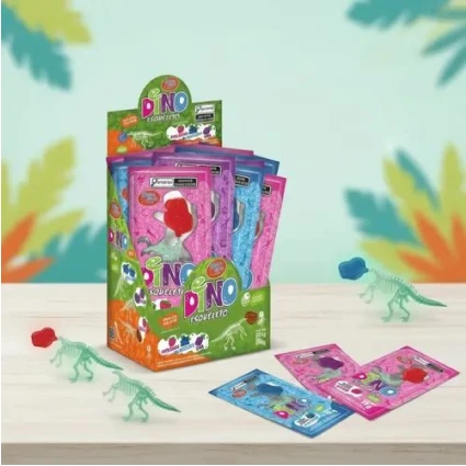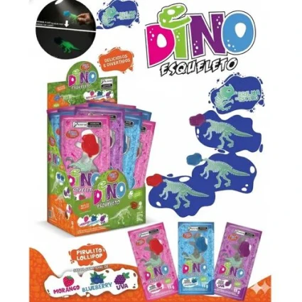 Brinquedo Colecionável: Após saborear o pirulito, a criança fica com um esqueleto de dinossauro luminoso para brincar e colecionar.
