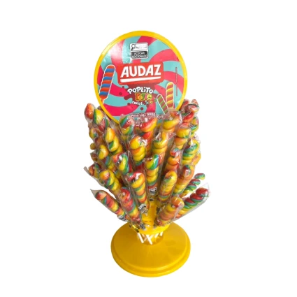 Adicione um toque de cor e movimento ao seu estoque com o Pirulito Poplito Torre Twist Colors da Audaz! Conhecido pelo seu visual clássico “twist”, este pirulito combina múltiplas cores em uma espiral perfeita, proporcionando uma experiência visual e gustativa única.