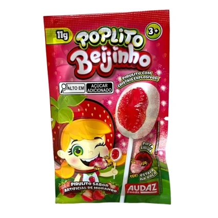 Transforme o momento do doce em uma verdadeira festa com o Pirulito Poplito Beijinho da Audaz! Projetado para encantar o público infantil, este pirulito une o sabor clássico do morango com efeitos surpreendentes que garantem o entretenimento em qualquer lugar.